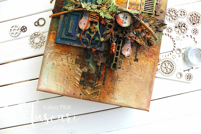 Для создания этой работы мне помогали материалы от Мускари. Двери я создавала с нуля, с помощью переплётного картона.